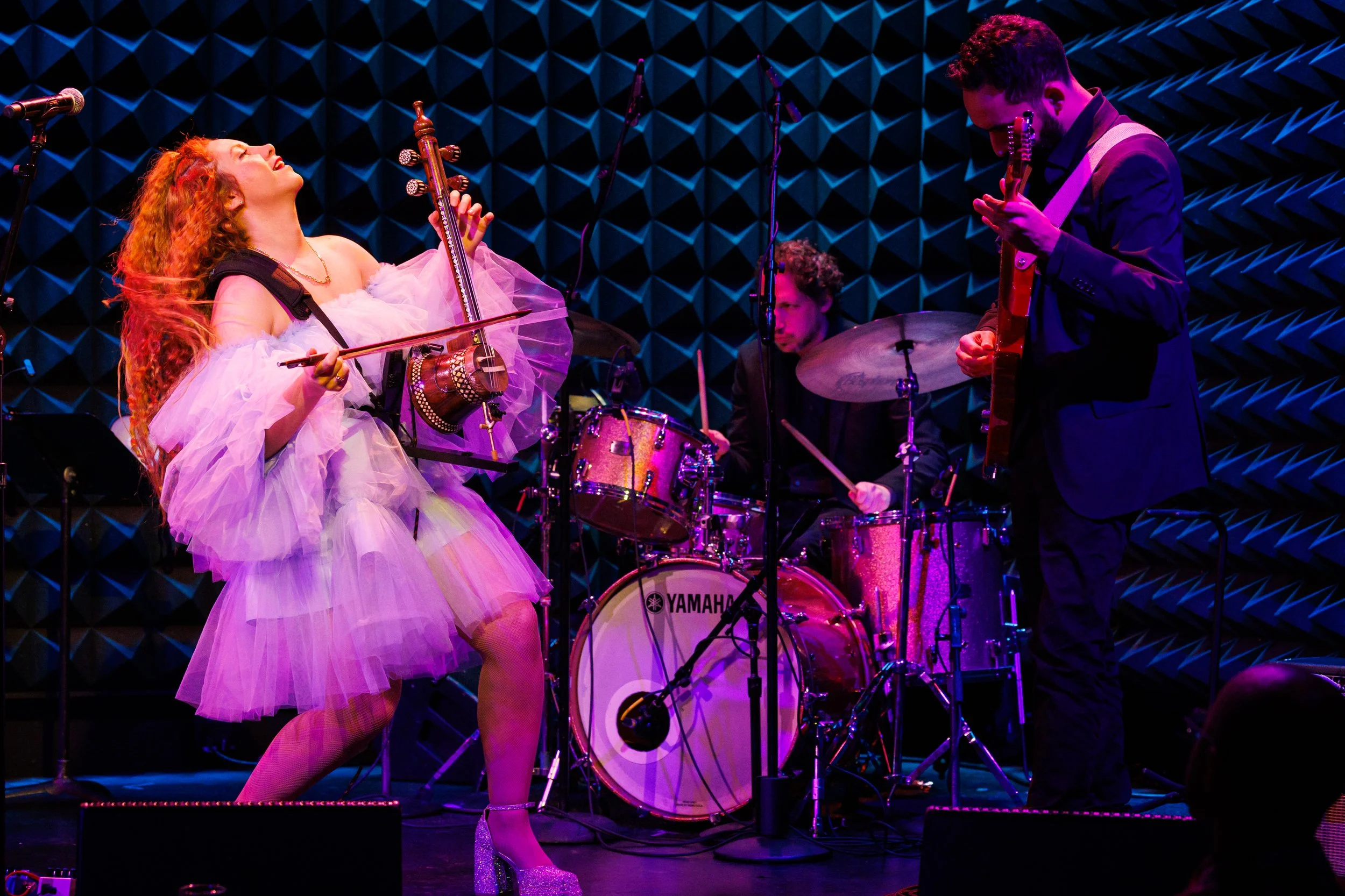 NYC-based Persian musician Mehrnam Rastegari is a master Kamancheh player, singer, violinist, and award-winning composer whose sound pushes Persian music into bold, modern directions. Her work threads Persian microtonal tradition through rock, psych, and contemporary styles, creating performances that feel deeply expressive.